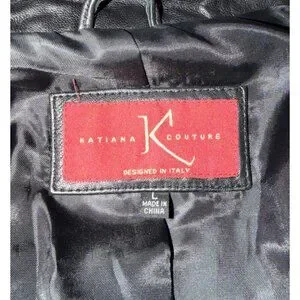 Crafted with sleek black leather, this Katiana Couture blazer combines sophistication with functionality. It features a button-up closure, a tailored fit, and a fully lined interior for added comfort and durability.