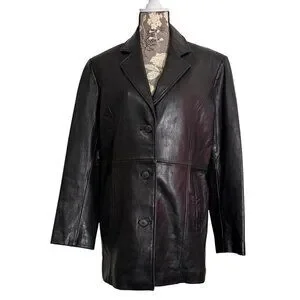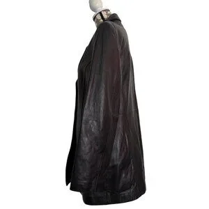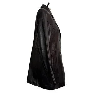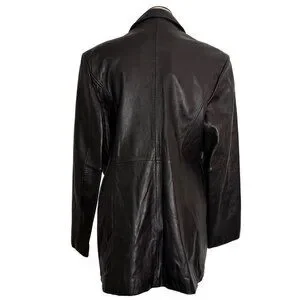 Katiana Couture Black Leather Blazer Jacket Womens Large Button-Up Lined Coat