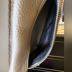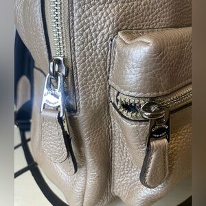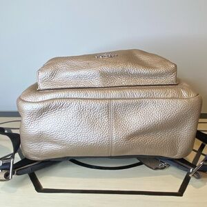 Gorgeous Coach pebbled leather backpack in a stunning metallic taupe / chrome champagne tone, Excellent Condition.