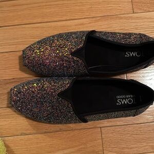 Toms Womens Alpargata Black Chunky Glitter Slip-on Shoe Size 8