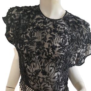 Great Gatsby vintage sheer bead cap sleeve flapper black tie elegant top S. Excellent condition. No flaws. No tags. Measurements for accurate fit in photos.