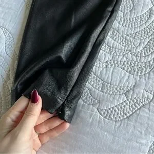 Luxe vegan leather stretch fabric gives a real leather look that won't rub off with wear. Built-in shaping, tailored stitching, and ankle zippers take these leggings to the next level.