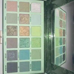 Set of five Jeffree Star eyeshadow palettes. Includes vibrant colors and unique designs.