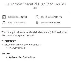 Lululemon NWOT Essential High-Rise Trouser in Black
