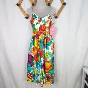 LDT Lillian Floral Cotton Poplin Belted Midi Dress New With Tags - Size 6