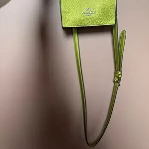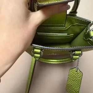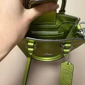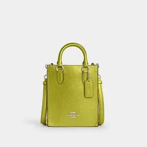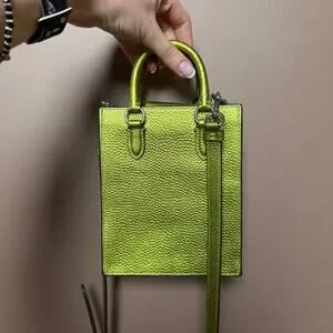 Coach North South Mini Tote Bag in a metallic neon green pebbled leather NWOT