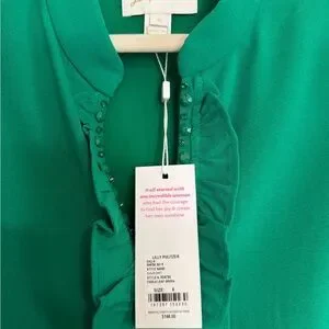 Lilly Pulitzer. NWT. Elegant green dress with ruffle detailing. Perfect for any occasion.