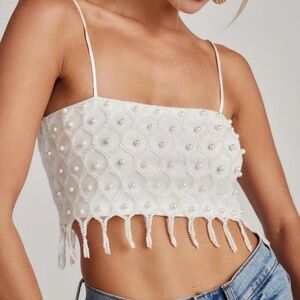 NWT. Sold out top — Can’t get the full set anymore! No missing beads or any flaws. Tags on. I had bought for my bachelorette/bridal festivities but never ended up wearing.
