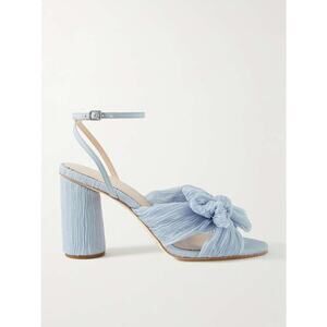 Loeffler Randall Camellia Bow-Embellished Plisse-Organza Sandals Sky Blue 7B