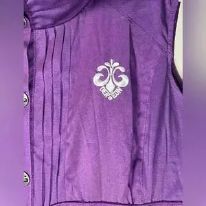 House of Dereon, Beyoncé’s fashion line, purple dress women’s size 3X. Sleeveless, belted, pockets, bubble hem, snap front closure. Adjustable back corset for the perfect fit. The purple fabric has a slight sheen to it. Approximate measurements 37” top of shoulder to hemline, 26” across chest, 30” hemline side to side. Very good preowned condition. “Couture.Kick.Soul.”