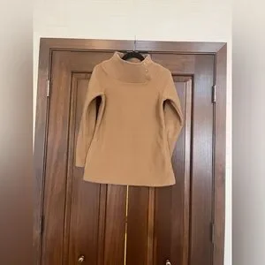 Stay cozy and stylish with this camel sweater featuring elegant button details. Perfect for any occasion.