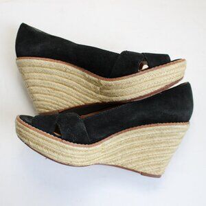 KORS Michael Kors Black Suede Platform Wedge Espadrille Open-Toe Heels Size 8.5