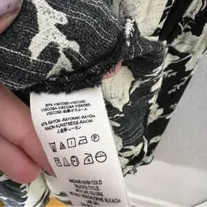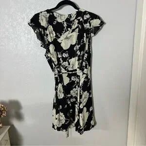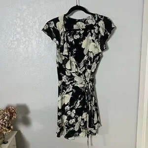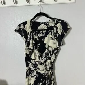 In good preowned condition. Black and cream floral print. Wrap style.
