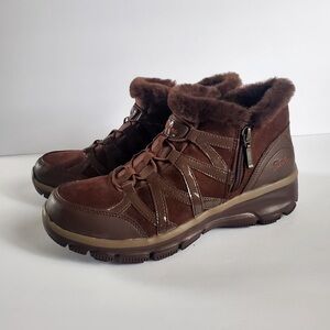 Skechers Women's Chocolate Fur-Trimmed Boots 8.5
