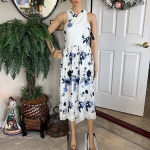 Brand New Tahari Cream Lace Dress w/ Embroidered Flowers Cris Cross Floral. Women’s size 6. Absolutely stunning!