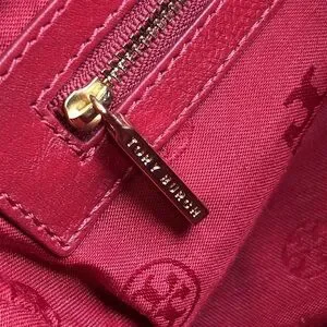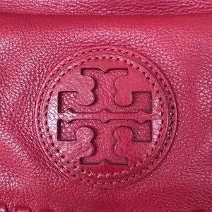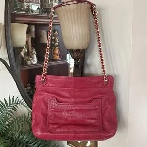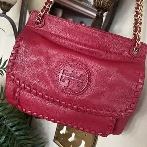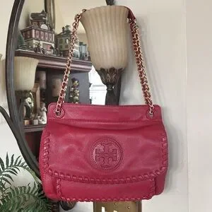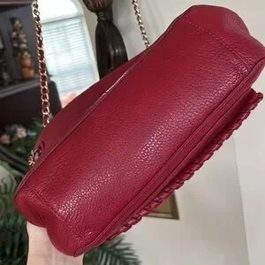 Tory Burch Genuine Leather Red Saddle Bag Gold Tone Chain Woven Shoulder Purse