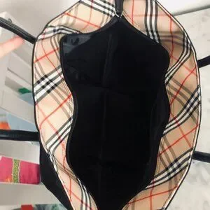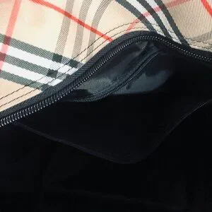 Design: Subtle, symmetrical Burberry "shadow" logo weave visible under light (at the bottom); signature Nova Check interior trim.