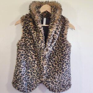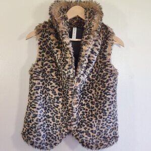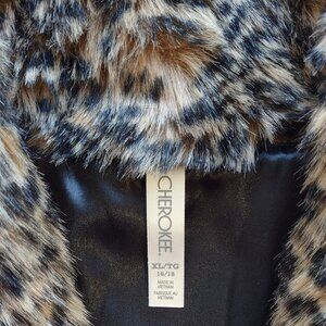 Cherokee Girls Leopard Faux Fur Vest with Shawl Collar