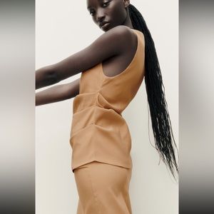 Zara stretching ruched caramel COORD SET skirt and top , 2 pieces