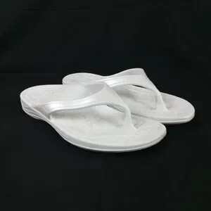 Aetrex Fiji Sandals Women Size 8 White Orthotic Arch Support Flip Flops