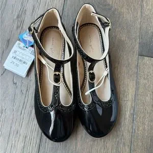 🆕 Zara Girls Black Patent Leather T-Strap Shoes for girls size 33
