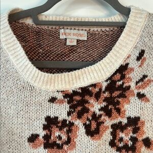 Knox Rose Cream, Brown and Rose Crew Neck Sweater with Contemporary Design