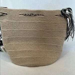 Elegant Cream and Black Handcrafted Bucket Bag