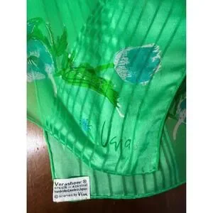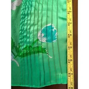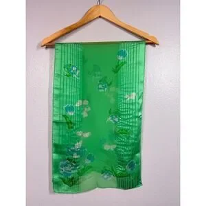Vera Neumann Scarf Women Green Vintage Floral Silk Blend Verasheer 13x43"