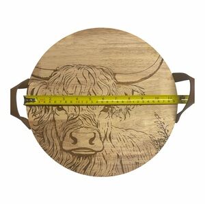 Rustic Highland Cow Wooden Serving Tray with Leather Handles
