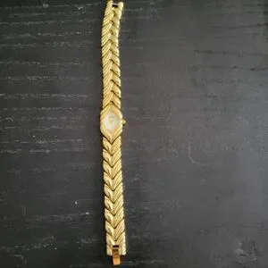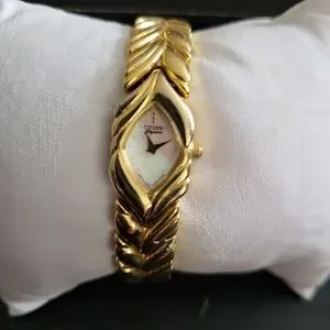 Elegant Citizen women's watch with a gold-tone plated bracelet. Features a unique leaf design. back shows wear. see photos