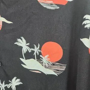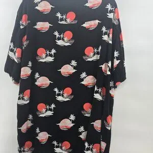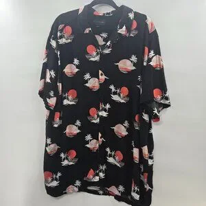 No Boundaries Men's Black Button Down Rayon Short Sleeve Hawaiian 3xl