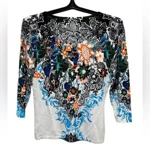 Peck & Peck beads floral quarter sleeves blouse Size Medium