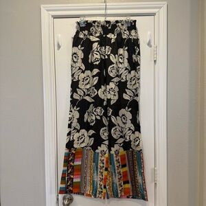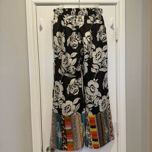 Anthropologie Pinkerton Silk Pants Women’s Small Black White Floral Boho Hippie