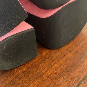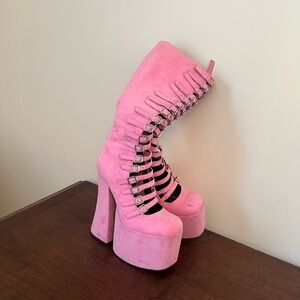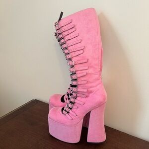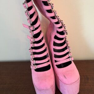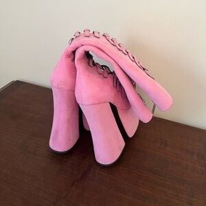 Current Mood pink suede strappy platform boots