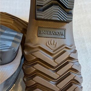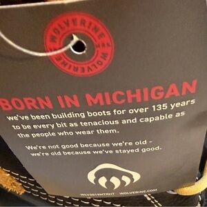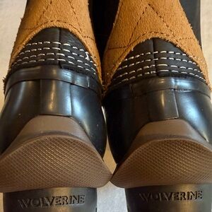 Stylish Wolverine ankle boots. Black body with tan laces. Durable and comfortable.