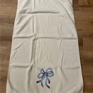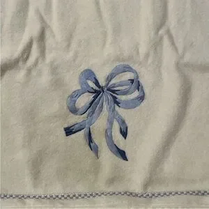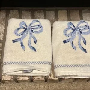 Enhance your bathroom decor with these elegant white towels featuring a beautiful blue embroidered bow design. Perfect for adding a touch of sophistication to your home bath.
