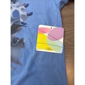 The Disney Lilo & Stitch Graphic Blue Short Sleeve Shirt in size medium is a unisex adults shirt made from cotton material. With a classic crew neck design, this shirt features a short sleeve and showcases the beloved Disney brand with a colorful graphic of the lovable characters Lilo and Stitch. Perfect for fans of the movie or simply those looking for a fun and comfortable addition to their wardrobe.