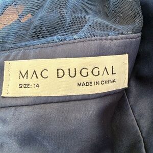 Mac Duggal Tea Length Gown, Midnight Blue sz 14