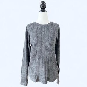 90s Vintage Grey ribbed cable knit long sleeve sweater