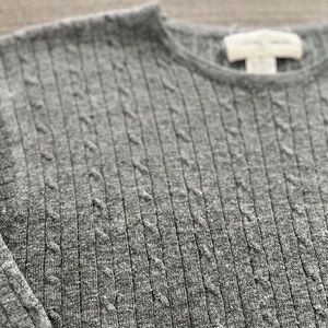 90s Casual Corner Grey Ribbed Cable Knit Wool Long Sleeve Sweater Large