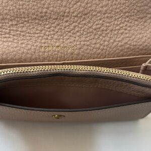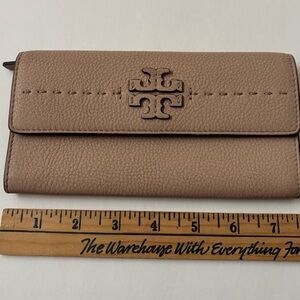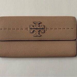 Tory Burch McGraw Flat Wallet Nude Cream Beige Pebbled Leather Slim Clutch