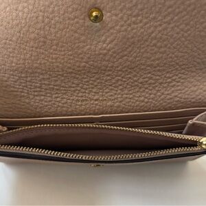 This wallet is in great pre-owned condition. The exterior pebbled leather is clean, and the corners show no significant wear or scuffing. The interior lining and pockets are pristine.
