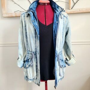 Acid Wash Denim Lightweight Jacket with hood - Size Medium