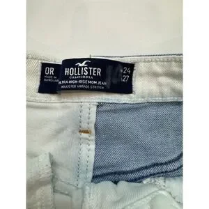 Hollister Mom Jeans Blue White Ultra High Rise Two Tone W24 L27