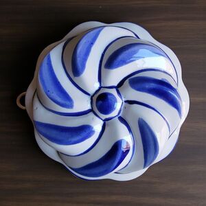 VTG Set Of 2 Knobler Japan Ceramic Jelly Molds Hand Painted Blue White Home