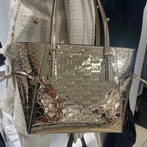 MICHAEL KORS Voyager Large Metallic Logo Debossed EW Shoulder Tote Bag