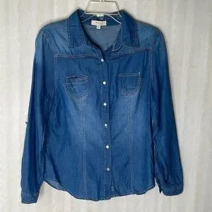 Stylish and versatile blue button down shirt for women. Perfect for casual outings or a day at the office.