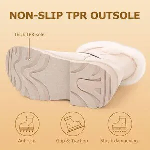 Chunky Heel for Height & Stability With a 2-inch chunky heel and 1.30-inch platform, thick platform heel subtly boosts height while enhancing stability, enabling confident, stylish steps in cold weather.