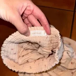 Adorable pink skirt with floral pattern. Features ruffled layers and elastic waistband. Perfect for any occasion.