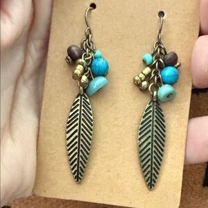Bohemian Leaf Dangle Earrings with Turquoise Accents